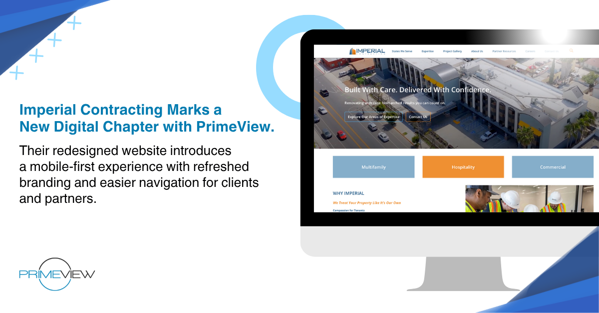 Phoenix, AZ, October 8, 2025 — At PrimeView, we are proud to announce the launch of Imperial Contracting’s redesigned website, a project that reflects both Imperial’s evolving brand identity and our shared commitment to building digital platforms centered around client connection and service excellence. The Phoenix-based general contractor, with more than 26 years of experience in multi-family and affordable housing rehabilitation, partnered with our Scottsdale team to create a modern, user-friendly online presence. The new site, now live at www.imperialconstructionservices.com, makes it easier than ever for Imperial’s clients and partners to connect.